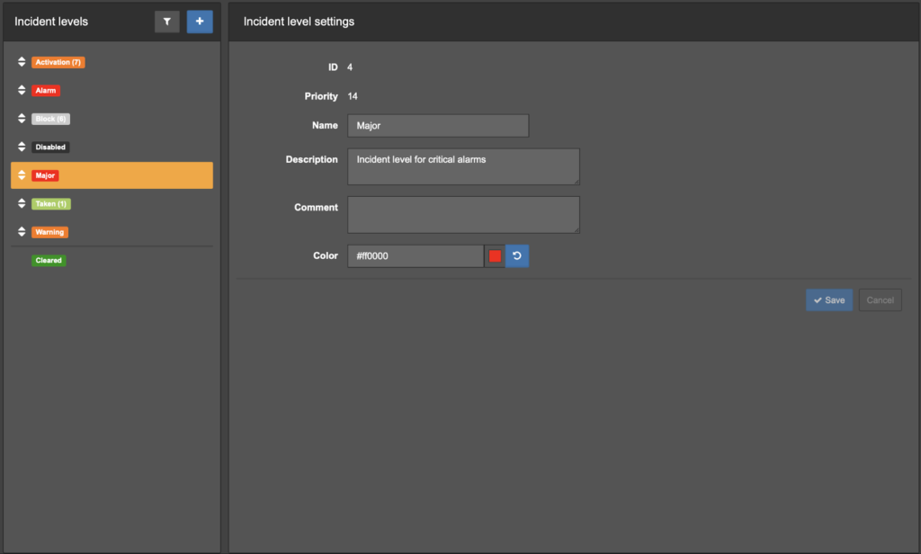 В актуальном релизе была добавлена возможность задания приоритета для уровней критичности аварии, для чего следует задействовать специальный API-запрос «Обновить уровень аварий», пример bash-скрипта для выполнения запроса: